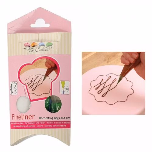 Ett paket med 10 st starka och flexibla engångsspritspåsar, samt 10 st små plasttyllar som kan användas vid precisionsspritsning (bokstäver, siffror och andra fina detaljer).